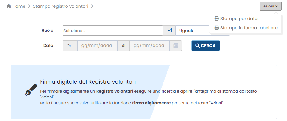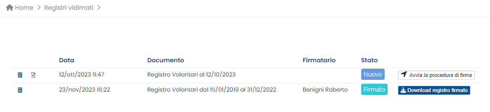 I Registri generati sono disponibili nella sezione Volontari > Registri Vidimati.