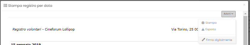Dal popup di anteprima utilizzare l’Azione “Firma digitalmente” per generare un nuovo registro da vidimare.