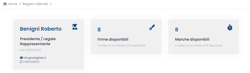 Nel cruscotto saranno visualizzate anche il numero di firme e di marche temporali utilizzate ed ancora disponibili.
