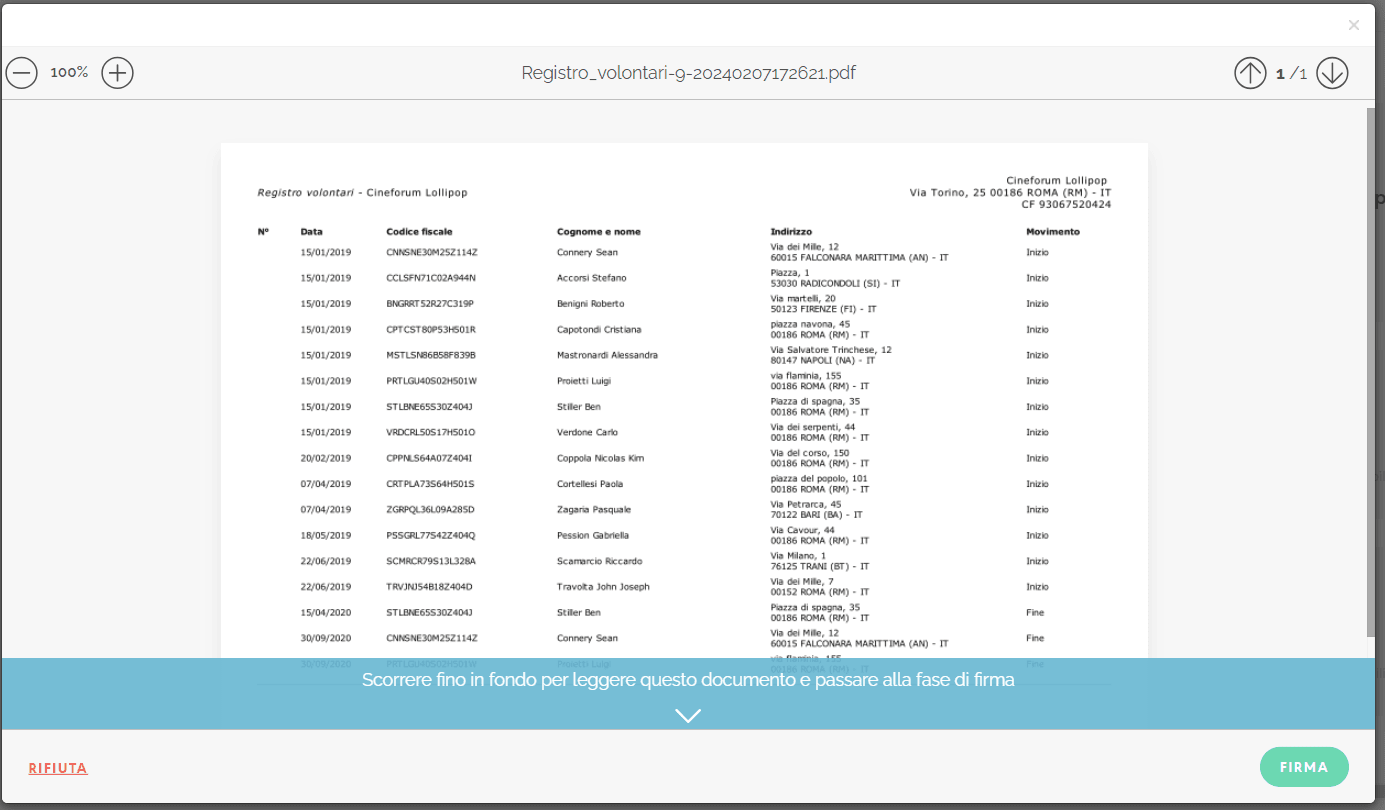 E’ necessario firmare il registro volontari almeno una volta ogni anno. VERIF!CO mi mette a disposizione 4 firme per ogni anno, in modo da poter rigenerare i registri in caso di modiche.
